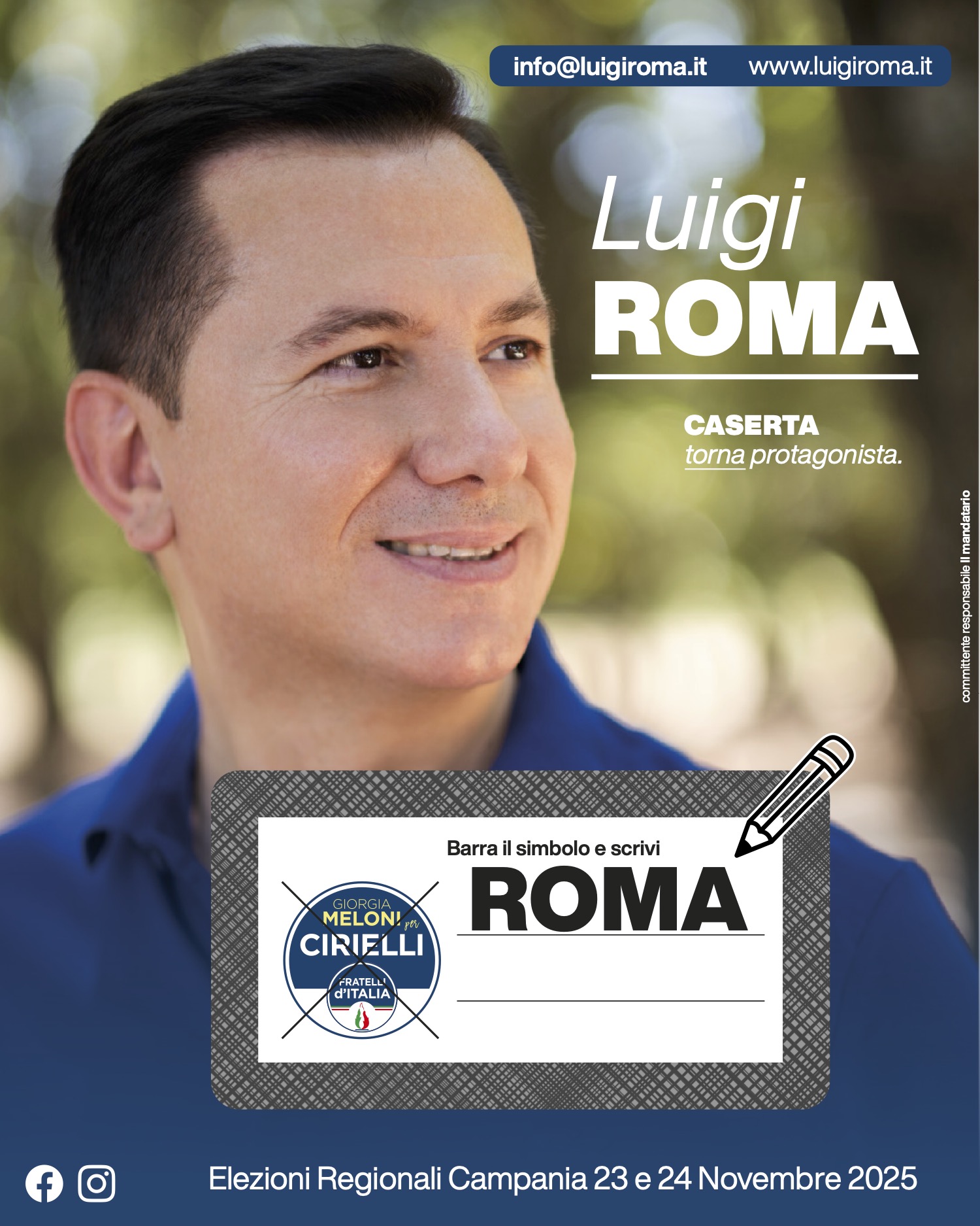 In ogni caso, per coloro che volessero conoscere più approfonditamente il mio impegno politico-istituzionale e professionale possono scrivermi su info@luigiroma.it